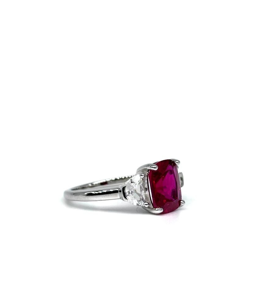 Synthetic imitations of white diamond and ruby ZC A+ Moro&Ognissanti, triangular and rectangular brilliant cut