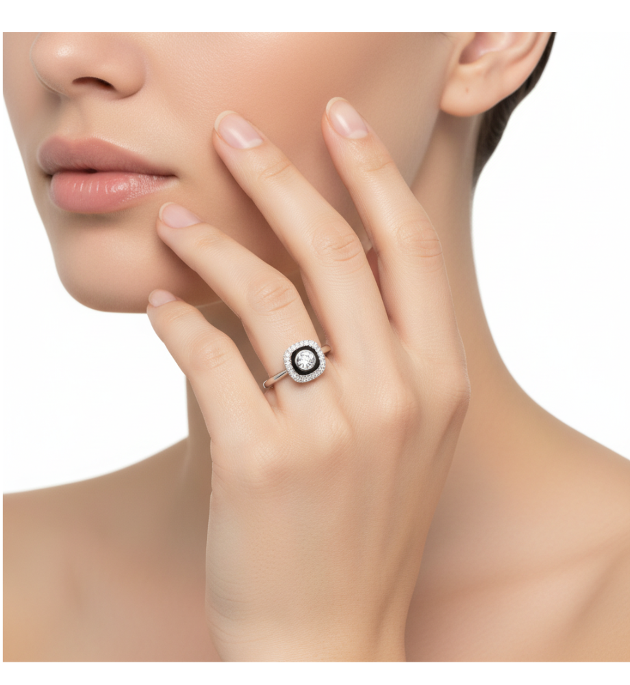 Imitazione sintetica del diamante ZC A+ Moro&Ognissanti taglio brillante round e smalto nero