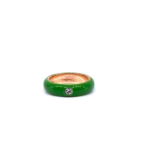 Anello in argento 925 bagno oro rosa e smalto verde.