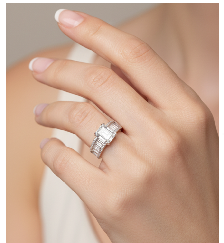 Imitazione sintetica del diamante bianco ZC A+ Moro&Ognissanti, taglio smeraldo, taglio baguette e taglio brillante round.