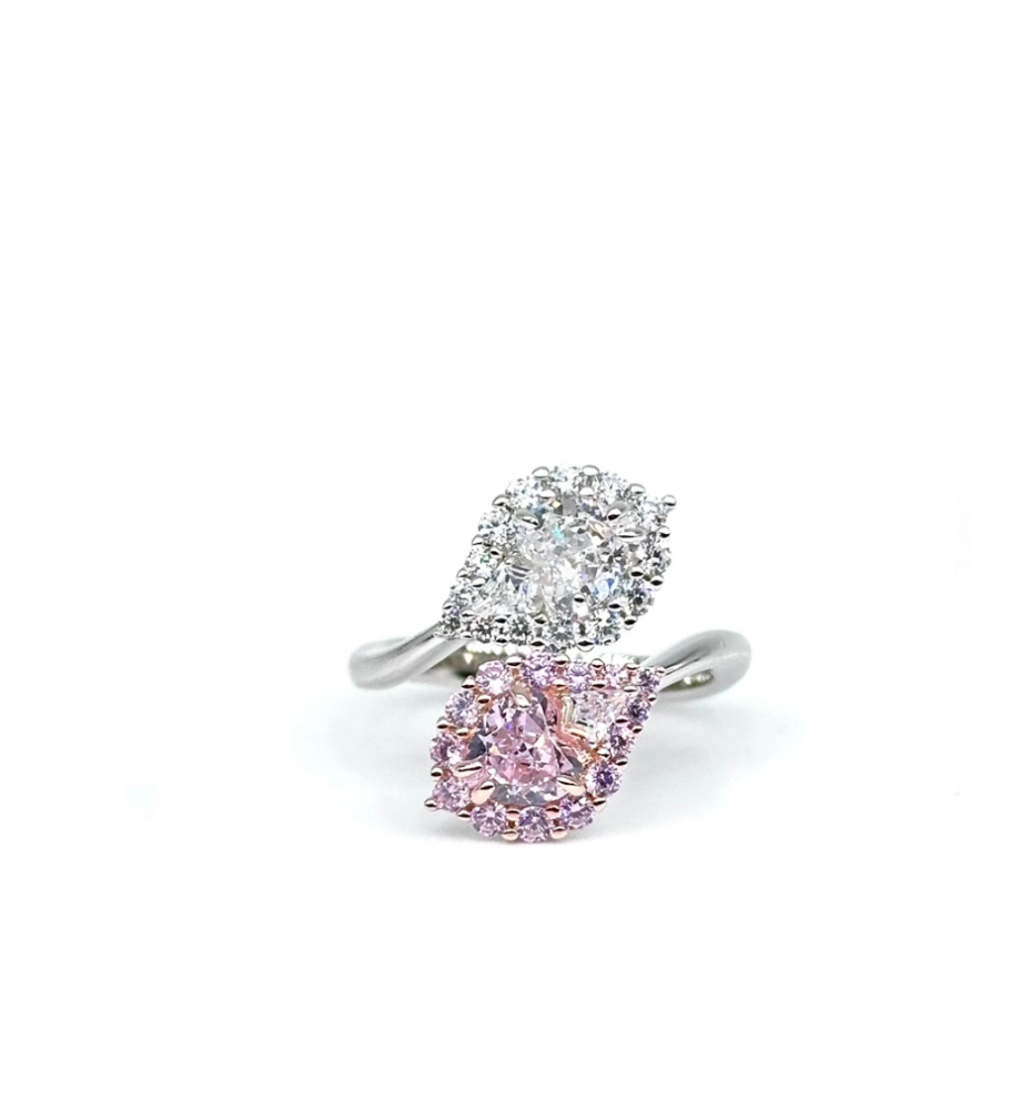 Imitazioni sintetiche del diamante bianco e rosa ZC A+ Moro&Ognissanti, taglio brillante round e a goccia.