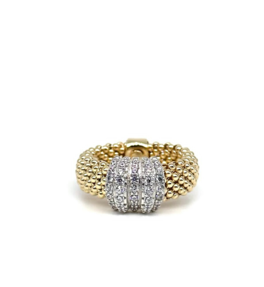 Anello semi-rigido, lavorazione realizzata a mano con inserti bagno galvanico con incastonati pietre sintetiche Moro&Ognissanti.