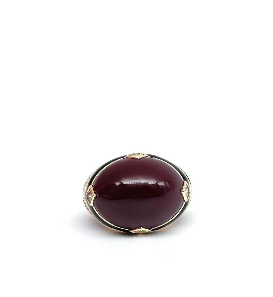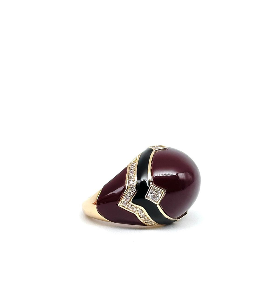 Anello in ottone placcato in oro 18 kt, con smalti, e imitazione sintetica del diamante ZC A+ Moro&Ognissanti taglio brillante round.