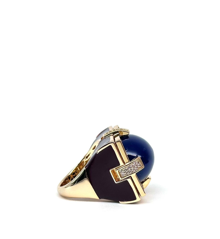 Anello in ottone placcato in oro 18 kt, con smalti, e imitazione sintetica del diamante ZC A+ Moro&Ognissanti taglio brillante round.