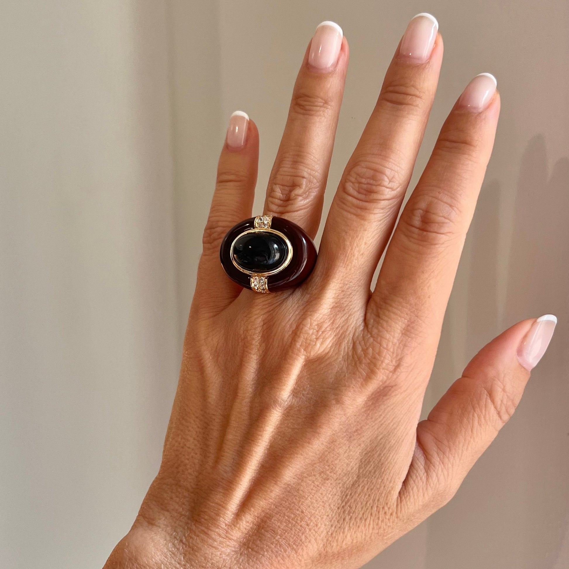 smalto marrone e pasta di onice nero