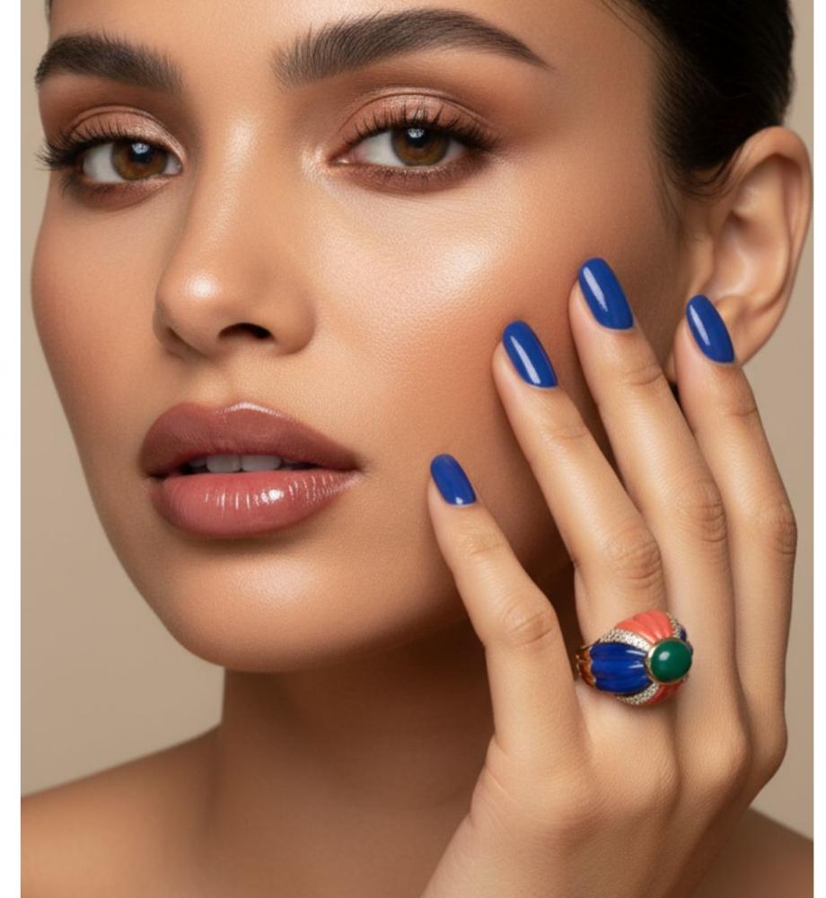 smalto blu, arancione e verde