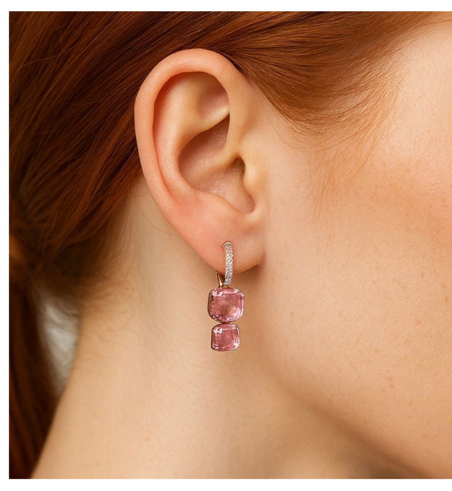 colore pietra: tormalina rosa, lunghezza cm 2,5