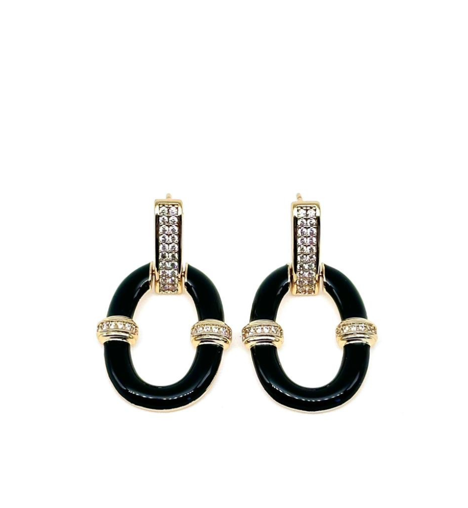 Orecchini in ottone placcato oro giallo 18 kt, smalti e imitazioni sintetiche del diamante ZC A+ Moro&Ognissanti taglio brillante round.