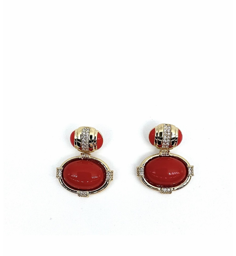 Orecchini in ottone placcato oro 18 kt, pasta di corallo e imitazione sintetica del diamante ZC A+ Moro&Ognissanti taglio brillante round.