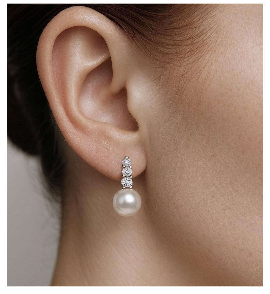 Imitazione sintetica del diamante ZC A+ Moro&Ognissanti taglio brillante round e perla di conchiglia.